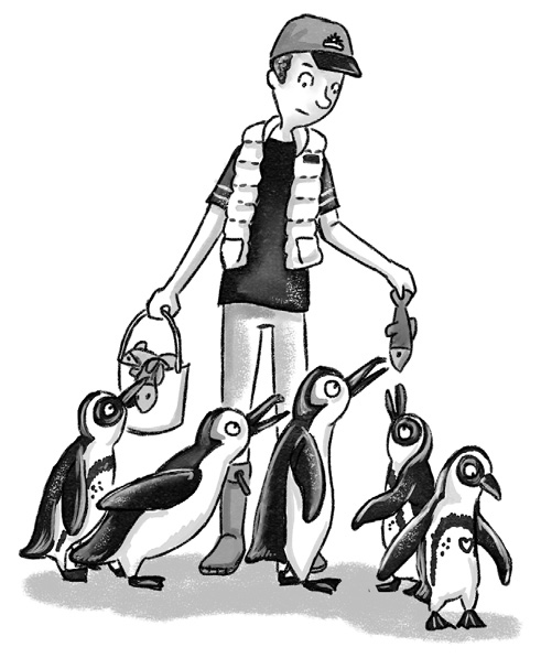 Ведро опустело, Бен поклонился зрителям и ответил на вопросы. Потом он отнёс в пингвинятник остатки корма и вернулся к Элли. Девочка наконец-то представила Тома смотрителю, и они вместе отправились к слонам.