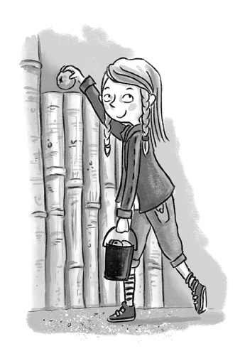 Когда на земле было достаточно сена, Бен принёс полное ведро яблок и груш. Элли помогла ему прятать фрукты. Животным предстояло искать их, как на воле, чтобы не заскучать.