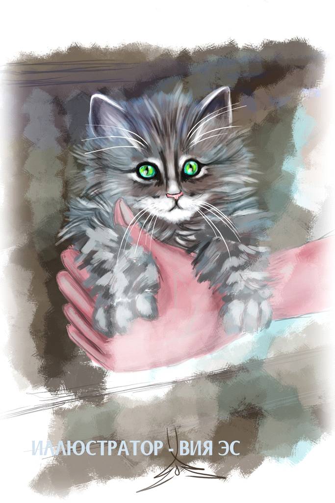 Итак, три года назад в такой же декабрьский день маленький котёнок замерзал на какой-то помойке, он уже и не мяукал и даже закрыл глаза, когда вдруг почувствовал как его взяли и понесли. Потом стало тепло, потом к его мордочке поднесли чуть тёплое молоко. И всё это время мужской голос говорил ему что-то ласковое. Котёнок смотрел на лицо разговаривавшего с ним человека и успокаивался. Потом пришли, громко хлопнув дверью и напустив холода, две женщины, они, увидев котёнка, кричали «нет, нет, никогда…» А мужской голос в просительных тонах едва был слышен среди крика…