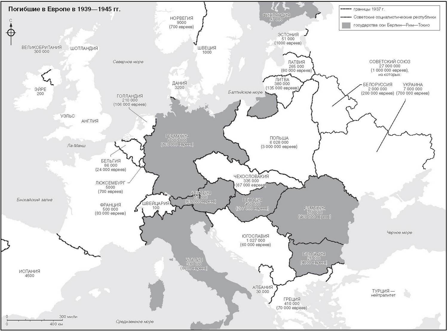 Еврейским общинам в сельских районах повезло ничуть не больше. На обширных просторах вокруг Минска в Белоруссии присутствие евреев сократилось с 13 % от всего населения до 0,6 %. В Волыни, самом сельском районе довоенной Польши, 98,5 % еврейского населения были уничтожены фашистами и местными полицаями. В общей сложности за время Второй мировой войны погибли по меньшей мере 5 750 000 евреев, что явилось самым жестоким и систематичным геноцидом в истории человечества.