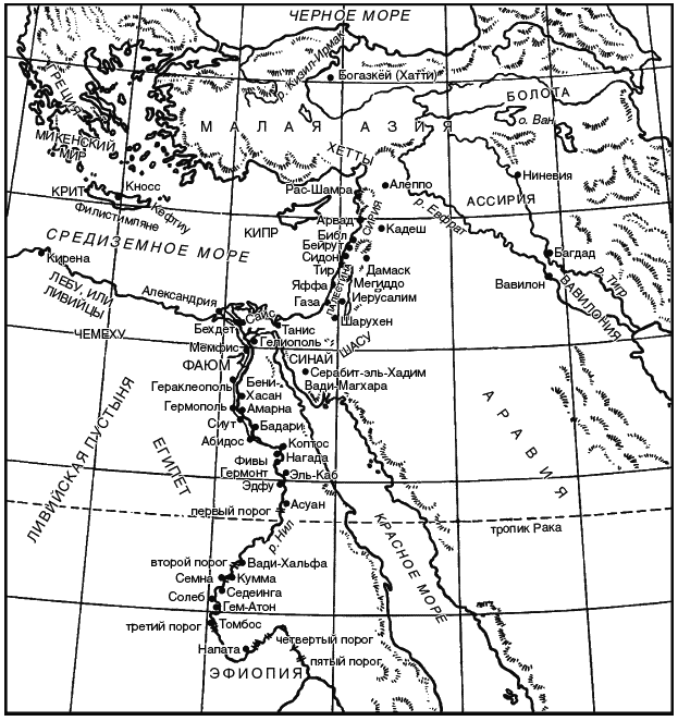 Примерно за 6 тысяч лет до н. э. Египет приобрел современный географический облик. Его население, если судить по языку, появилось в результате смешения по меньшей мере двух разных элементов: палеолитических аборигенов и хамитских племен. Последние лингвистически были тесно связаны с семитами Ближнего Востока, аккадцами Вавилонии, финикийцами, евреями, арамеями и арабами. Они жили на берегу Средиземного моря в Северной Африке, но постепенно в результате изменений климата, из-за которых в их родных местах невозможно было получить достаточно пищи, переместились в долину Нила. Возможно, что нилоты хлынули в Египет с юга, тогда как с востока через Синайский полуостров или через Красное море пришли семиты, принеся с собой сельскохозяйственные занятия. В течение нескольких веков эти разные элементы смешивались, пока их изначальные этнические особенности не были полностью утрачены. В результате появился новый народ – египтяне, которым было суждено создать культуру исторического периода.
