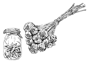 2. Приготовить маринад. Довести раствор до кипения и затем добавить в него уксус. Подготовленный чеснок заливать горячим раствором. Так же маринуют лук.