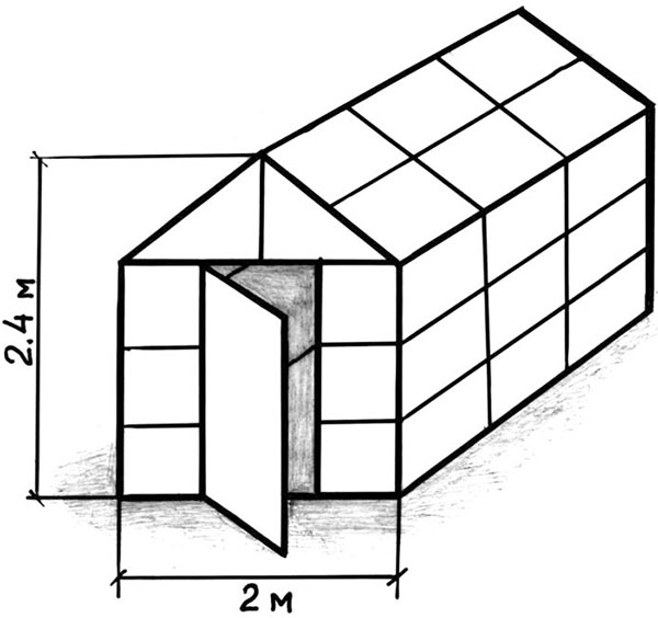 Коньковые теплицы обычно имеют ширину 2 м и произвольную длину. Вертикальные стойки по длине стенок обычно располагают через 50–60 см при остеклении и несколько реже (70–80 см) при использовании пленки или поликарбоната (рис. 2а). Внутри располагают две грядки, расположенные вдоль стенок (рис. 2б).