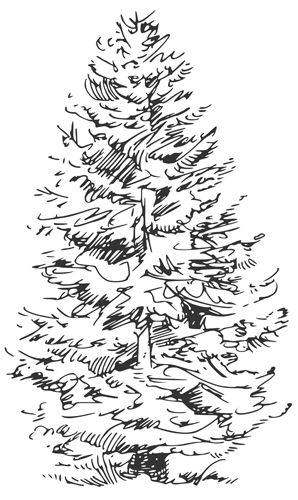 А вот если вы дадите елкам вырасти слишком высокими и спилите у них верхушки, то одна, самая близкая с месту спила ветка, будет пытаться заместить верхушку и начнет расти вертикально вверх. Ствол в этом месте искривится, а ель будет тянуться вверх.