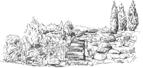 Если вы сажаете деревья, то их следует расположить в вершинах треугольника со сторонами разной длины, причем самое высокое из них надо сажать на заднем Плане. свободное пространство засадить стелющимися хвойными растениями.