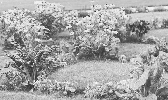 Грядки, расположенные на ровной поверхности, можно врезать в газон и при этом придавать им произвольную форму (рис. 1, 2). Чтобы отделить такие грядки от газона, надо высадить по краю кант из низкорослых обильно цветущих все лето однолетних цветов (например, флокс Друммонда, пиретрум, сальвия, агератум и другие). А еще лучше использовать ремонтантную безусую землянику. Либо высадить огородные растения на переднем плане рабатки из цветов или миксбордера (декоративных кустарников в совместной посадке с цветами).