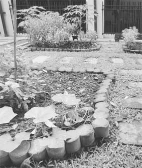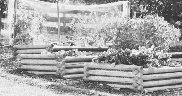 Грядки не обязательно окаймлять плоским шифером, хотя это наиболее хороший вариант в смысле их долговечности. Прекрасно выглядят грядки, окаймленные бревнами (рис. 4), чурками (рис. 5) или более примитивно – старыми (или новыми) досками (рис. 6) и даже плоскими металлическими батареями, раскрашенными различным образом. Если есть в семье подростки, увлекающиеся граффити, вот и отдайте им грядки на откуп, глядишь, и полюбят что-нибудь растить на них. Окаймлять грядки, а особенно цветочные клумбы, можно даже бутылками из-под шампанского. Их надо воткнуть горлышками в почву плотно друг к другу. Тем более что бутылки и березовые чурки позволяют делать грядки любой конфигурации, а не только прямолинейные.