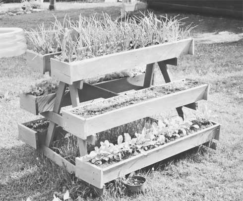 Такие ящики, или короба – ароматные квадраты – можно закапывать в землю в разных частях сада на солнечных местечках, а также переносить их с места на место. Чаще всего в них выращивают пряные травы и разную огородную зелень (рис. 9).