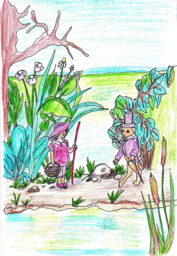 1. Девочка встречает благовоспитанную собачку на краю пруда