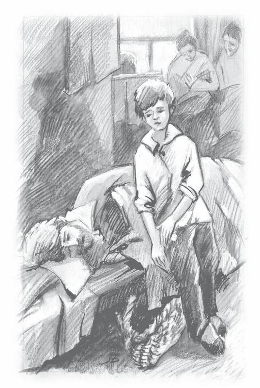 В первой комнате, за старой рваной ширмой только один из всех жильцов подвала никуда не собирался и лежал чуть ли не на голых досках, подложив себе под голову вместо подушки какое-то старое тряпье. Это был еще не старый мужчина, исхудалый, бледный, со впалыми глазами, очевидно, больной. Он печально смотрел на мальчика, присевшего боком около него и опустившего голову.