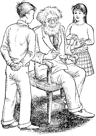 И вот старшие брат и сестра пошли и постучали в дверь кабинета; профессор ответил: «Войдите!» – и поднялся с места, и принес им стулья, и сказал, что полностью в их распоряжении! А потом он сидел, сцепив пальцы, и слушал их историю с начала и до конца, не прервав её ни единым словом. Да и после того как они кончили, он ещё долгое время сидел молча. Затем откашлялся и сказал то, что они меньше всего ожидали услышать: