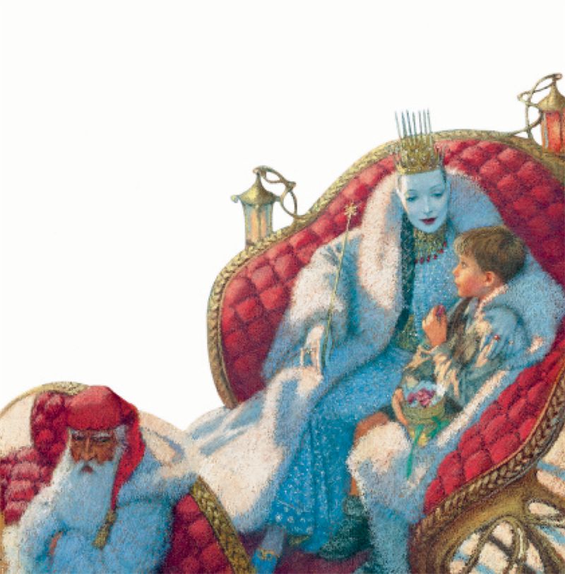 – Бедное дитя, – произнесла она совсем другим голосом, – как ты замёрз! Садись ко мне в сани, я согрею тебя своей мантией, и мы сможем поговорить.