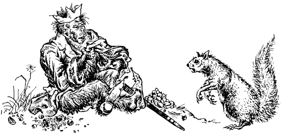 Бедные белки помчались прочь, словно за ними гналась собака. Новый приказ застал их врасплох – почти все орехи, заботливо припасенные на зиму, были съедены, а всё остальное они уже отдали Обезьяну.
