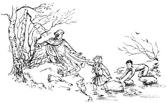 Как только они дошли до просеки, тархистанцы подняли крик и бросились на них с оружием. Но король протянул им меч рукоятью вперёд и сказал: