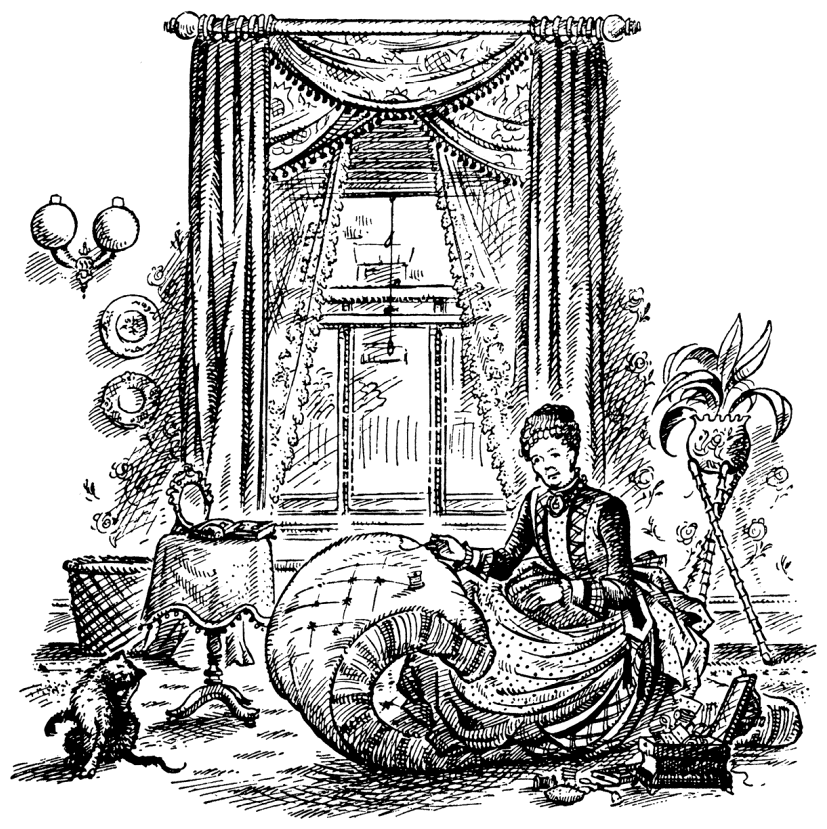 Наконец он отпер дверь, послал служанку за кебом (тогда у всех была масса слуг) и пошёл в гостиную. Там, как и следовало ожидать, тётя Летти у самого окна чинила матрас.