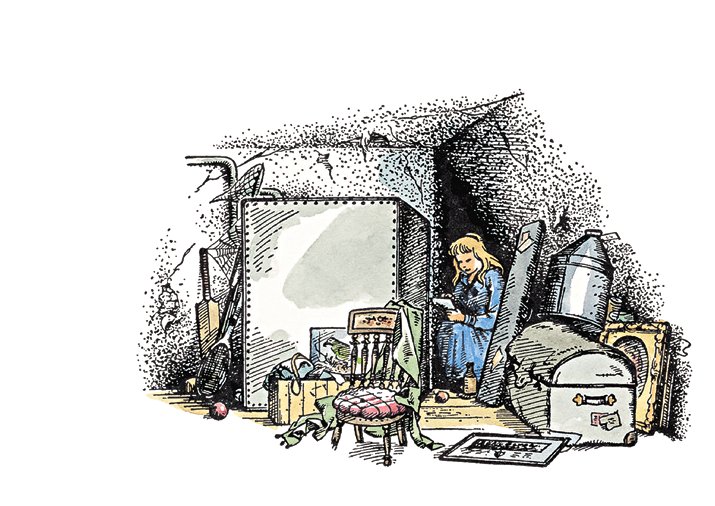 Кресло с высокой спинкой, стоявшее перед камином, задвигалось, а из-за него, как в пантомиме, вылез дядя Эндрю. Они были вовсе не в пустом доме, а в доме Дигори, да ещё и в заповедной мансарде! Дети хором охнули. Теперь обоим казалось, что иначе и быть не могло, потому что слишком мало прошли.