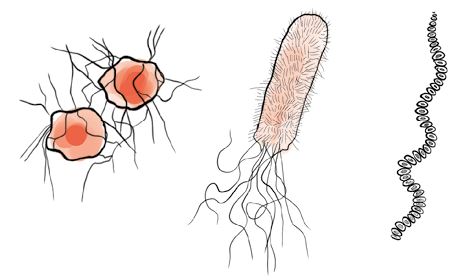 Археи, цианобактерия и «современная» бактерия (слева направо)