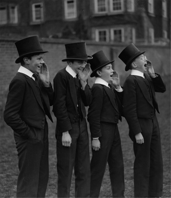 До того как в 1870 году начальное образование в Великобритании стало обязательным, в таких школах, как Итон и Харроу, обучались дети из привилегированной и достаточно анархичной элиты. Лишь после реформ Томаса Арнольда 1830 года в школе Рагби, упорядочивших как учебную программу, так и поведение учеников, школьная форма – средство установления порядка – была принята во всех школах. Головные уборы в то время не только отличали учеников определенной школы, но и указывали на соблюдение определенных норм поведения. Быть замеченным без головного убора вне помещения, не снять шляпу перед дамами или старшими – все это считалось проступком и влекло за собой наказание. К XX веку школьные цилиндры и канотье стали мгновенно опознаваемыми маркерами благосостояния и привилегий (ил. 2), а их владельцы – мишенью для насмешек и метательных снарядов: Лорд Зазнайка, глупый мальчик в цилиндре и полосатых брюках из The Beano (газеты-комикса для мальчиков) неизменно попадает в беду. Даже тем ученикам Итона, которые получают стипендию, приходилось защищать свои шляпы от атак товарищей по учебе. Школьные головные уборы могут также обозначать старшинство или привилегии: например, в школе Св. Павла по экстравагантной традиции канотье получают мальчики, чей рост превышает 182 см.