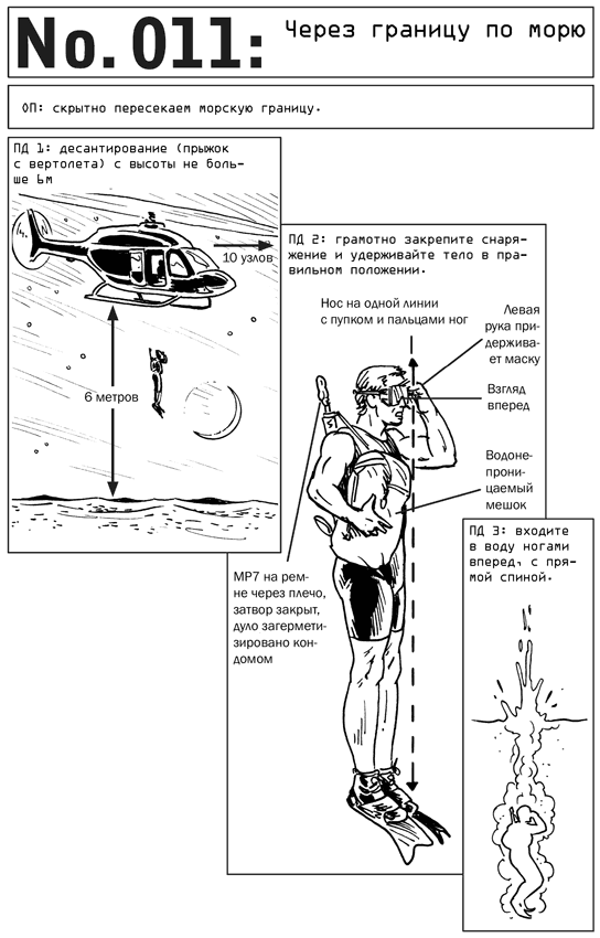 Беженцы и контрабандисты хорошо знают, что даже в самые закрытые страны, как правило, можно попасть через морские границы. Для спецагента, озабоченного скрытностью и секретностью, лучшим способом перехода границы, там, где это позволяет гидрография, будет выброска с вертолета в море.