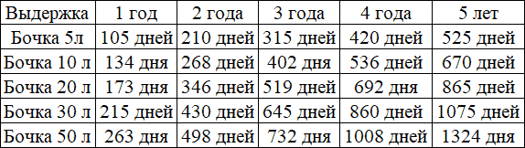 Таблица 2. Эквивалент сроков выдержки к промышленной бочке 200 л