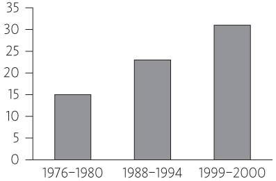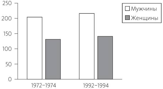 Однако рак – это лишь часть обширной картины заболеваний и смертности в США. Анализ ситуации показывает, что здоровье американцев в целом оставляет желать лучшего. Так, например, жители США быстро становятся самыми тучными людьми на планете. Количество американцев с избыточным весом на сегодняшний день значительно превосходит число тех, чей вес находится в норме. Как показывает график на рис. 1.2, доля страдающих ожирением стремительно растет на протяжении нескольких последних десятилетий{4}.