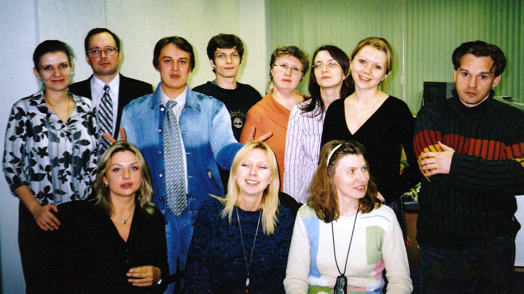 2003 год. Новостная бригада Альфии Зивере с руководителем Службы информации Анной Уваровой. РБК-ТВ еще не вышел в эфир