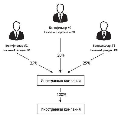 В данном примере Бенефициары (налоговые резиденты РФ) не будут признаваться контролирующими лицами (при условии отсутствия иного контроля с их стороны). Однако у Бенефициаров сохраняется обязанность представить уведомление о начале прекращении участия в иностранной организации.