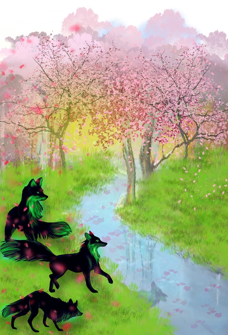 К нам приближались несколько животных, по виду напоминавших обыкновенных лисиц. Только шерсть их была чёрной как уголь, словно обожжённой, и от неё исходило зеленоватое свечение.