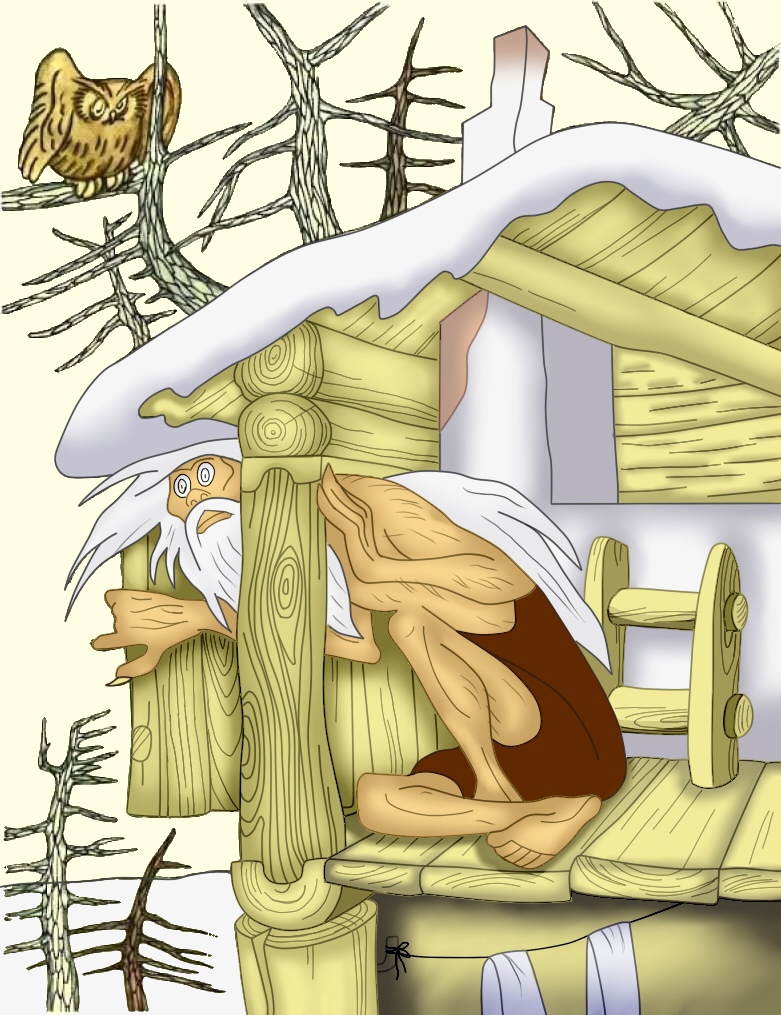 Шел, шел, видит – стоит избушка. Дверь открыта. В каменке огонь едва-едва теплится. А хозяина нет.