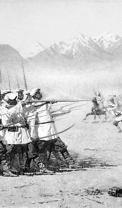 Неприятель не замедлил явиться: густая толпа конницы помчалась с места в карьер и, по мере приближения к отряду, вытягивалась в ленту. Вот впереди на своих лихих аргамаках несутся туркмены, в руках у них сверкают острые как бритва дамасские сабли; за ними – хивинцы в высоких бараньих шапках прилаживают на всем скаку стрелы; там – неуклюжие киргизы и каракалпаки, выдвинув свои длинные-предлинные пики, с широкими ножами с боку… Густые облака пыли скрыли на время эту дикую атаку; раздался дружный залп из ружей и орда рассыпалась. В азиатских войнах первый удар решает дело; стойкость всегда берет вверх над пылкостью всадников. Еще несколько атак и хивинцы отошли версты за две, охватив русский отряд полумесяцем. Положение последнего становилось опасным: припертый к реке, за 1400 верст от границы, без надежды на помощь – было о чем задуматься! В одну ночь русские насыпали валы, втащили 6 пушек и стали за ними, готовые умереть. С раннего утра нападения возобновились. Лихие туркмены всегда неслись впереди, прикрывая толпы пеших, которые рассчитывали вскочить на вал. Выпустив тучу стрел, туркмены очищали фронт, но тут раздавался залп картечью[1], за которым слышались стоны, проклятия – и поле очищалось. У хана было войска до 20 тысяч. Он высылал новые толпы… Неустанный бой продолжался до вечера. Кучка бойцов, запертых в окопах, изнемогала от усталости, от жажды; некогда было воды напиться, солнце жгло немилосердно, ветер поднимал облака язвительной пыли и мелкого песка; ружья до того накалились, что их нельзя было держать в руках.
