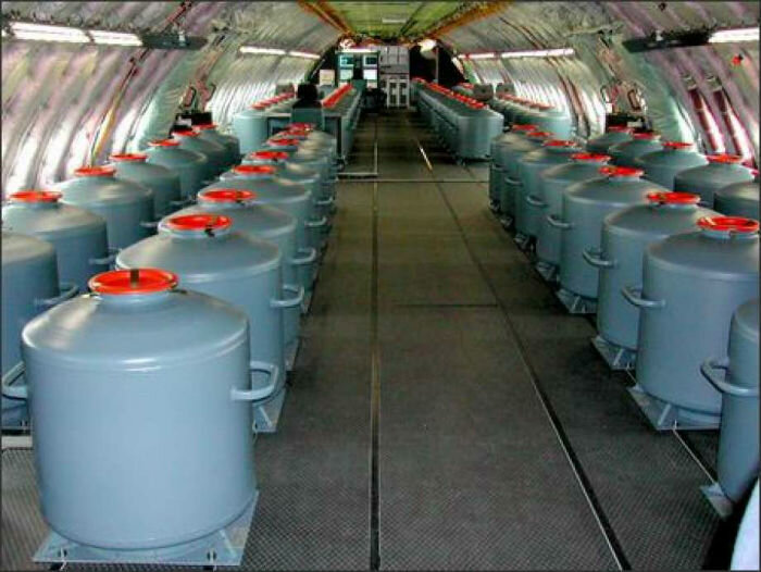 Ёмкости с алюминиевой пудрой внутри самолёта.