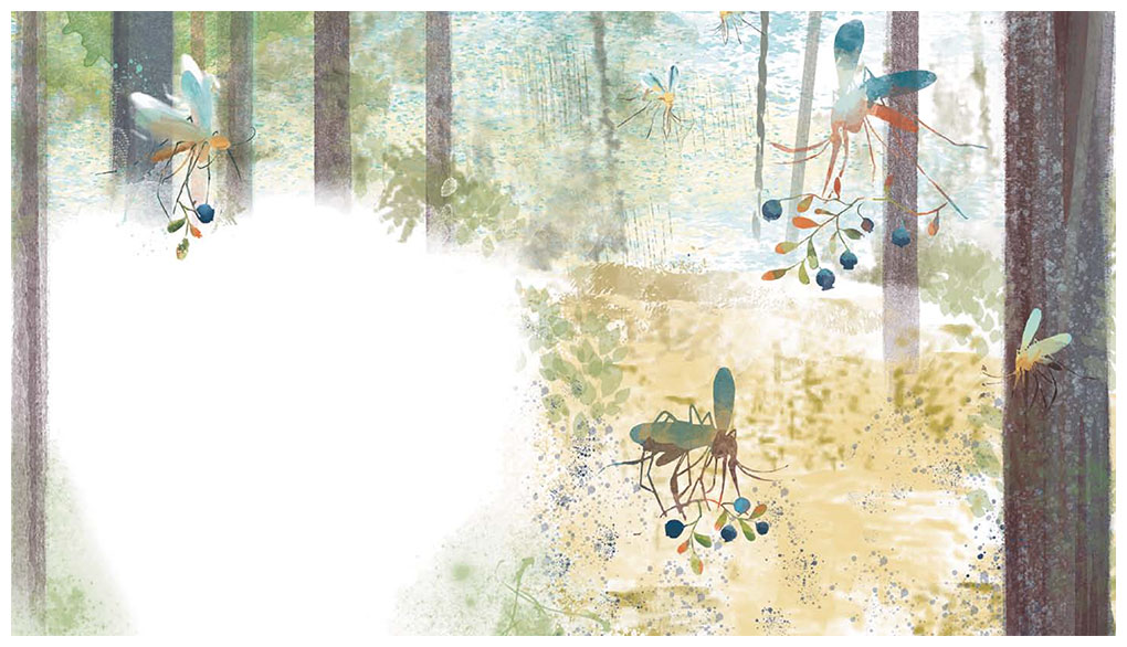 С утра пошёл в бор за черникой. Зашёл в самую середину, подхожу к одной кочке, наклоняюсь – тут же комары как налетят и давай жужжать, предлагать свой товар: