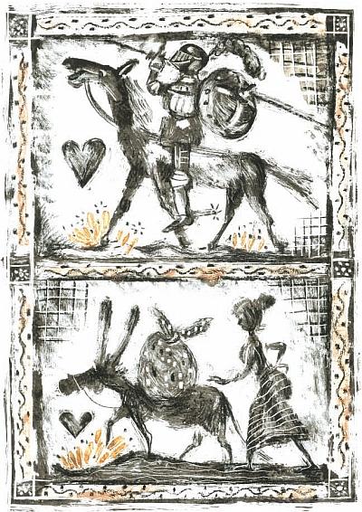– Нет, – возражает рыцарь, – мне дамы сердца не нужны больше, от них только суета и нервозность. Мне другое нужно: оруженосца бы мне, я б тогда горы свернул.
