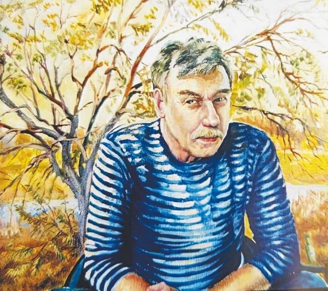 Вот, смотрите: портрет нашего местного (волжского) художника Владимира Юнака, написанный его другом Александром Маканиным.