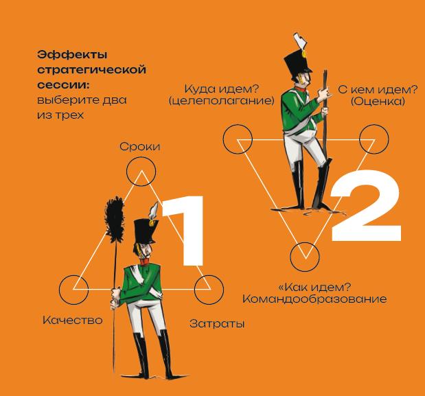 Аналогичная дилемма тройственной ограниченности действует и в отношении стратегических сессий. С их помощью компании почти всегда пытаются достичь трех взаимоисключающих эффектов.