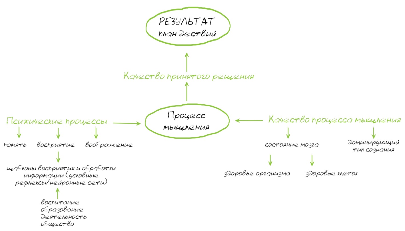 Главным образом от того, как протекает процесс мышления. И для начала давайте вспомним, как это происходит…