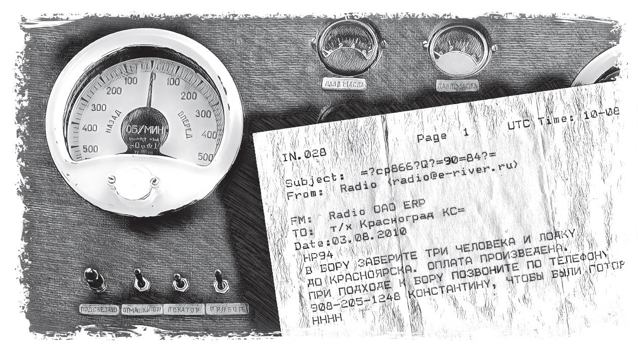 «Луговскому Красноград тчк 6 авг на участке у впдения Подк Тнг на борт взять трех туристов и маломер судно объем 2,1 куб м тчк платеж документы на руках тчк конт тел 89082051248 тчк»