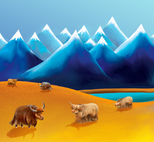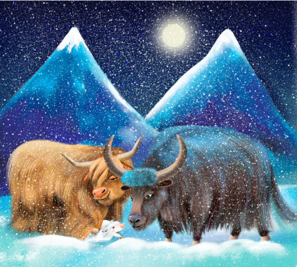 The herd lived high in the mountains, where snow lay almost all year round, so they often had to travel long distances in search of food. Time passed, Mi grew up kind, smart and brave. In addition to playing with peers, he was very fond of asking questions. He was interested in absolutely everything that happened around him. Sometimes he lay down under the open sky, looked at the stars and dreamed of traveling. It seemed crazy, because yaks never left their homelands. With the advent of spring, the days began to last longer, the sun shone brighter. Nature seemed to come alive. Even temperature rose above zero degrees. The snow that hide the mountain paths began to melt gradually. Small streams filled the turbulent rivers. Leaves began to blossom on the trees, and the air was filled with the aroma of herbs.