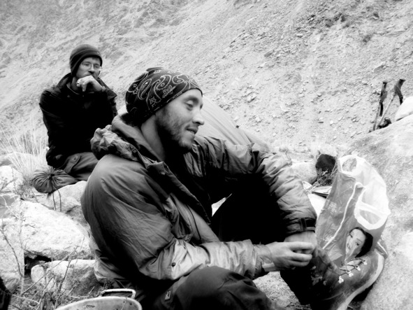 Потому что спуск это всегда тяжёлое мероприятие, намного тяжелее набора. Решительность Чижика, во взятии вершины подарила группе пять лишних дней. В тот же день в базовом лагере собралась вся группа и отпраздновала успешное восхождение. Излишек раскладки мы оставили в мешках, привалив их камнями, весь мусор нещадно пожгли, и не теряя времени начали скатываться вниз. Предстояли долгие диалоги с обитателями афганского КПП, так как мы попадали в их странный график выходных при переходе границы. Погода благоприятствовала нашей концессии вплоть до 31 августа. Потом вдруг неожиданно начало моросить, небо стало хмуриться и погода словно подгоняла нас вниз. Но чем больше группа делала сброс по высоте, тем легче дышалось и шагалось.