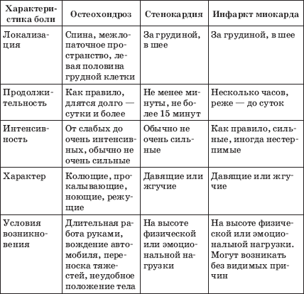 Боли при остеохондрозе, стенокардии, инфаркте миокарда