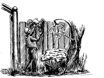 И мы пошли, а точнее, полезли. Чтобы попасть к маме, нам пришлось карабкаться через забор. Мера вынужденная, но деваться некуда – никто через выход не входит.