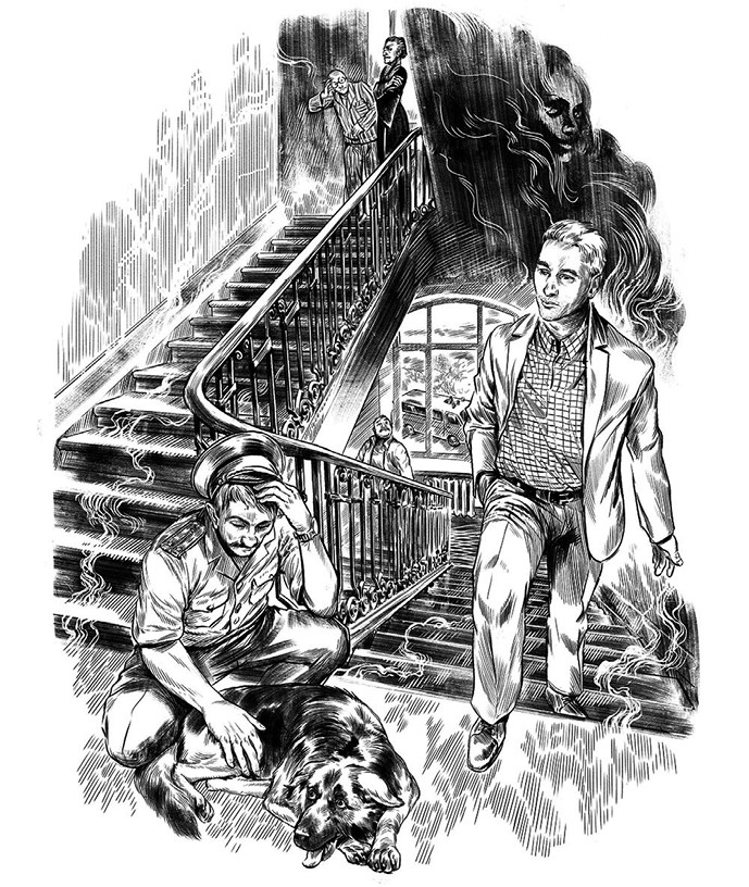 За тяжелыми двойными дверями пологая узкая лестница через высокую арку с лепными узорами вела на основной лестничный марш, изгибающийся вправо, как винтовые ступени в замковой башне. Сверху неслись голоса, шарканье ног, стук дверей. Где-то заходилась заливистым лаем маленькая собачка. Навстречу спустился усатый дородный мужчина в трикотажных тренировочных брюках и наброшенной на майку белой выглаженной рубашке – типичный гражданский, поднятый по внезапной тревоге. На этажах было по две квартиры, некоторые двери приоткрыты, из них выбивался слишком яркий для раннего утра свет и слышались нервные разговоры.