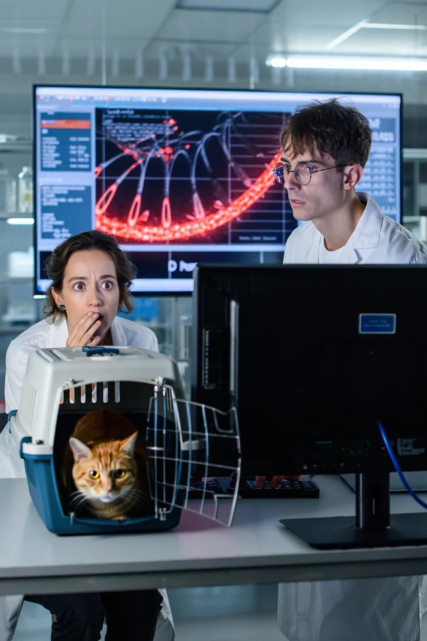 Барсик вышел медленно, оглядываясь. В слепящем свете лабораторных ламп его шерсть казалась неестественно яркой. Он не вырывался, не шипел. Он был необычайно спокоен, почти вял, позволив Карине взять себя на руки и уложить на стол. Его дыхание было ровным, слишком ровным. Но желтые глаза неотрывно следили за каждым движением Карины, за каждым шагом Артема, стоявшего в стороне. Взгляд был тяжелым, оценивающим, лишенным обычного кошачьего игривого любопытства или страха.