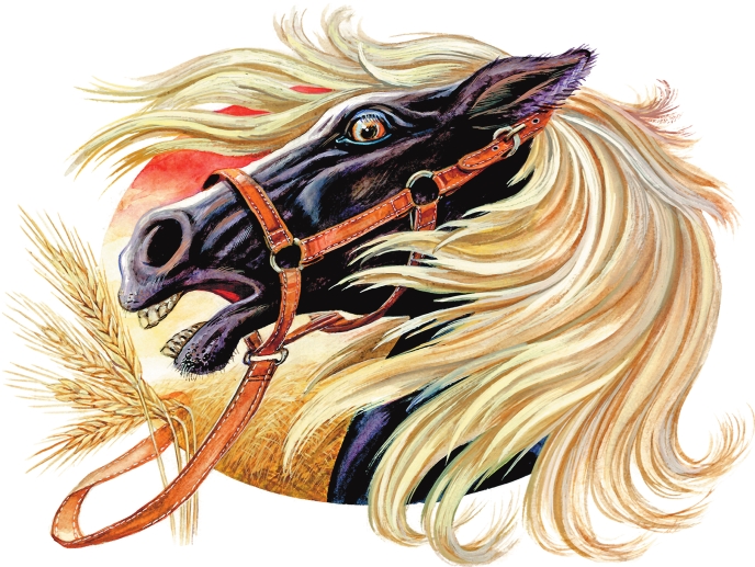 Слеза скатилась у коня из глаз. Конь заржал жалобно, протяжно, взмахнул хвостом, и тотчас в голых деревьях, в изгородях и печных трубах завыл, засвистел пронзительный ветер, вздул снег, запорошил Фильке горло. Филька бросился обратно в дом, но никак не мог найти крыльца – так уже мело кругом и хлестало в глаза. Летела по ветру мёрзлая солома с крыш, ломались скворечни, хлопали оторванные ставни И всё выше взвивались столбы снежной пыли с окрестных полей, неслись на деревню, шурша, крутясь, перегоняя друг друга.