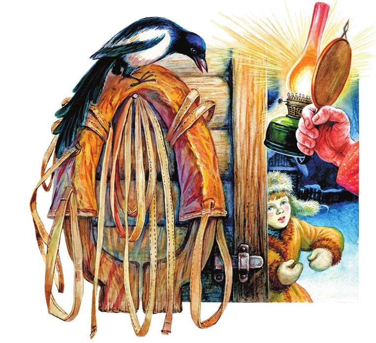 В сенях у Панкрата жила сорока. Она не спала от холода, сидела на хомуте – подслушивала. Потом она боком, озираясь, поскакала к щели под дверью. Выскочила наружу, прыгнула на перильца и полетела прямо на юг.