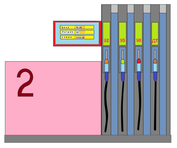 Обычно, на одной колонке сразу несколько пистолетов. Зачем так много. Это для того, чтобы можно было выбрать нужное топливо. Обычно там можно встретить надписи А-92, А-95 или ДТ, но иногда может быть и больший выбор. Водитель сам выбирает то топливо, которое нужно именно его машине (Рисунок №6).