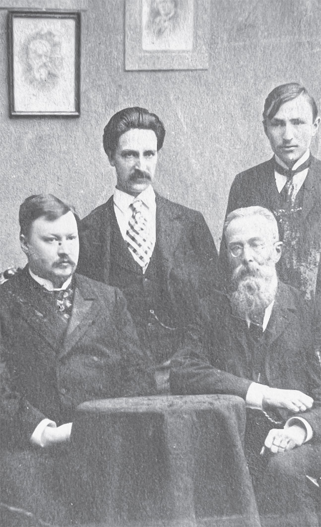 Другой возможностью было его знакомство с Милием Балакиревым, с которым отец часто общался и находился в переписке долгое время (в свое время я убедился в большом количестве писем с обеих сторон), а Балакирев был очень близок к кругу Римского-Корсакова. Милий Балакирев был наставником и проводником по музыкальной жизни многих таких, как мой отец, и часто оказывал им помощь. В этом можно убедиться, прочитав биографию этого большого музыканта и человека. Отец может быть даже какое-то время учился в бесплатной музыкальной школе, созданной Балакиревым, и последний уже представил его Римскому-Корсакову, как самородка из народа. Я являюсь сторонником этой версии.