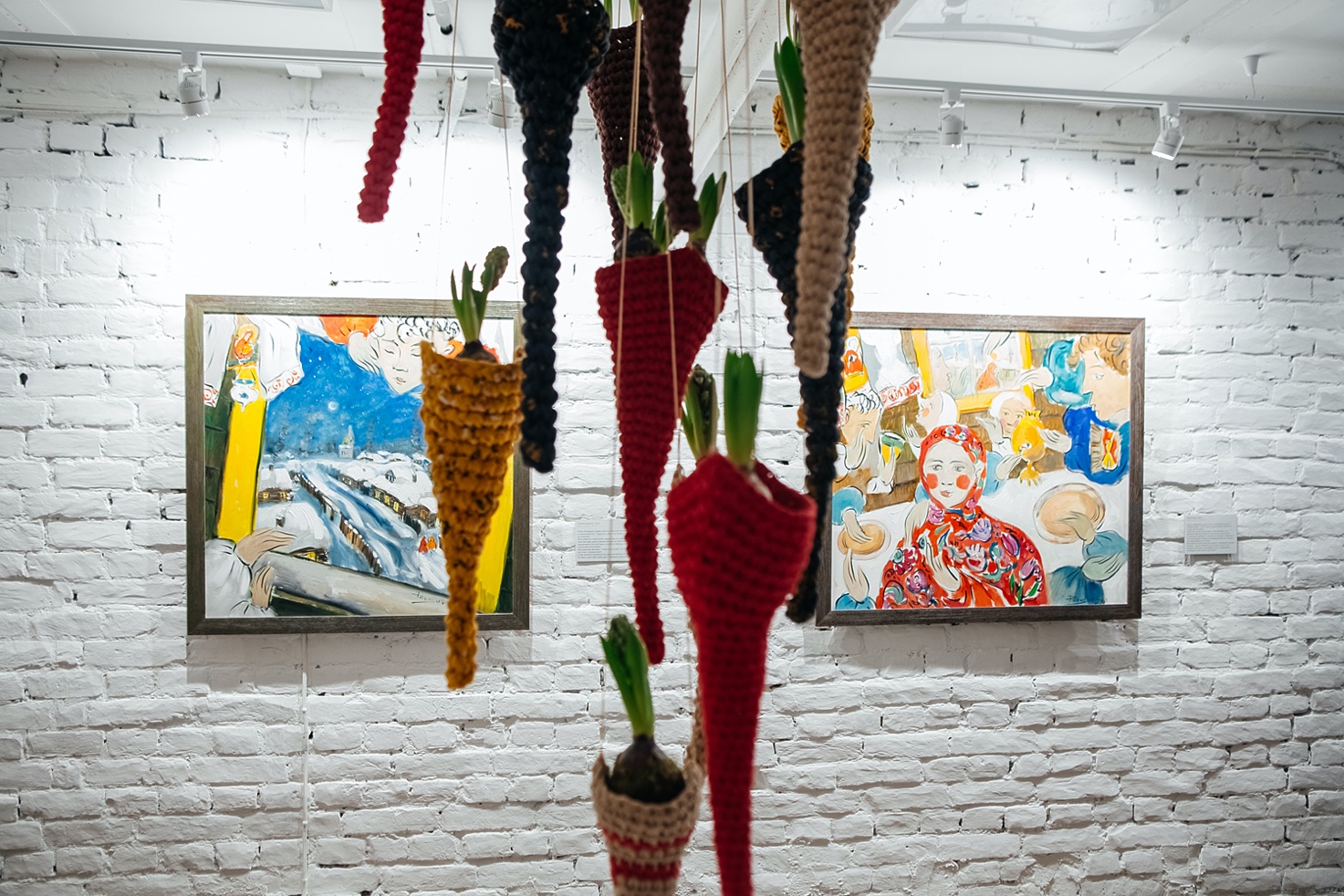 Открытие персональной выставки «Масленица». Фрагмент экспозиции с инсталляцией Романа Штенгауэра. Сибирское Арт-Пространство, Новосибирск. 2020