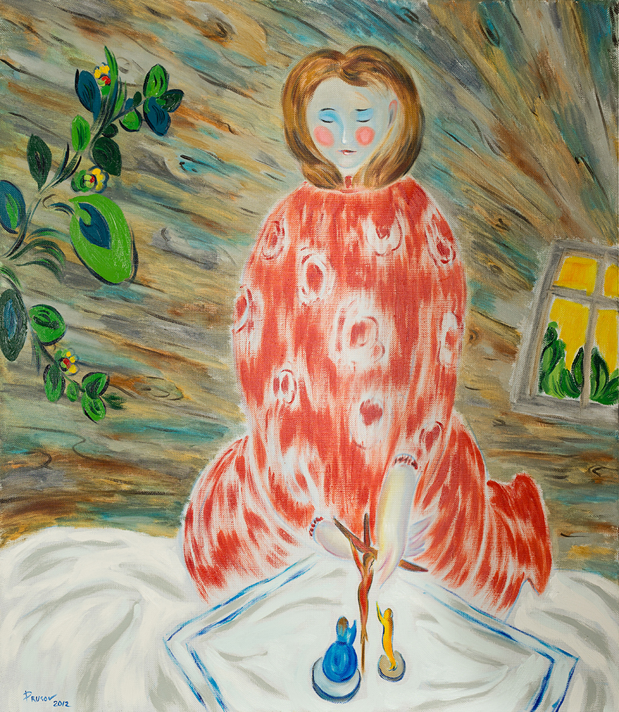 Мои картины – это моя страна: здесь герои радуются жизни, мудро оценивая те или иные события. Это место, наполненное уютом и заботой о каждом. В ней есть та часть России, которая близка моему сердцу.