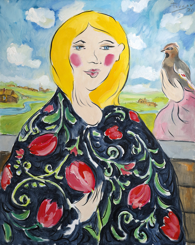 Марфа и свиристель. 2020. Холст, масло. 100х80 см